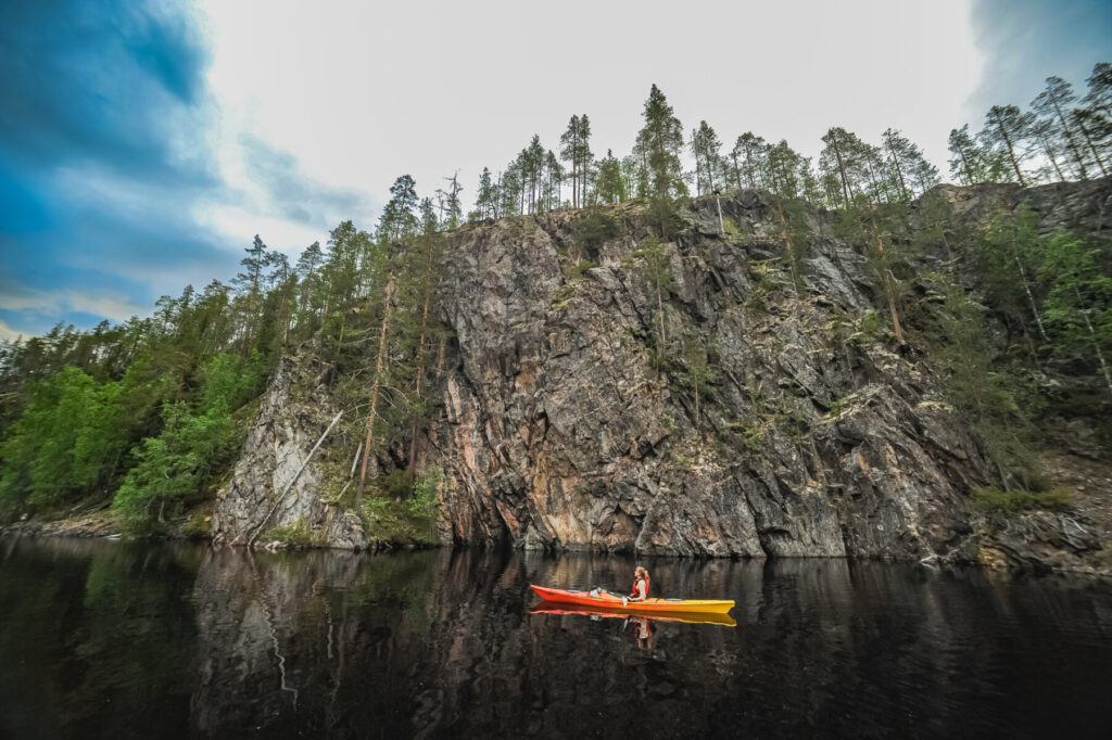 Im arktischen Seenland bieten die Sommermonate eine einzigartige Atmosphäre und viele Möglichkeiten, etwas zu unternehmen. Wandern, Radfahren, Angeln, Kajakfahren, Standup-Paddleboarding und Beerenpflücken sind besonders beliebt. Durch die Mitternachtssonne sind die Tage besonders lang, so dass Aktivurlauber auch rund um die Uhr Zeit im Freien verbringen können. Wenn die Abende dunkel werden, können die Herbstfarben der Wälder und Sümpfe des arktischen Seenlands in der Gegend von Kainuu an der frischen Luft bewundert werden, indem man Beeren oder Pilze sammelt, mit Huskys wandert, Mountainbike fährt oder in verschiedenen Resorts adrenalingeladene Sportarten ausprobiert.