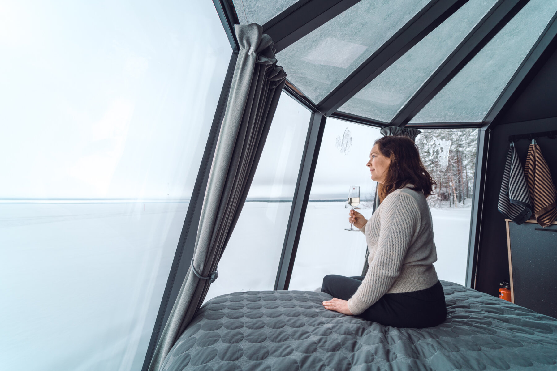 The trip culminates in a magical overnight stay in a glass igloo at Oulujärvi, where you can fall asleep under the Arctic sky, perhaps even catching a glimpse of the northern lights. Enjoy a delicious dinner in the igloo and relax in the lakeside sauna, soaking in the peaceful winter surroundings.