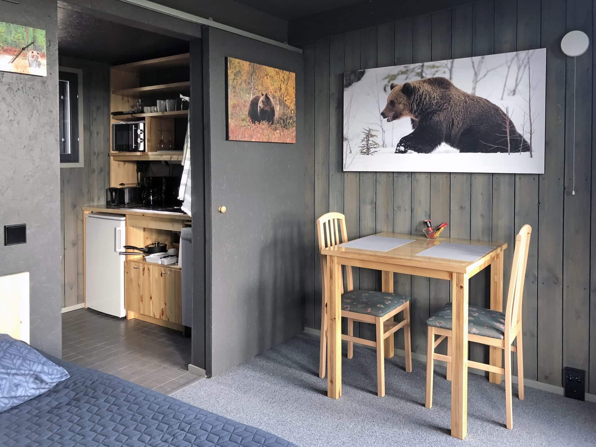 Our Luxury Bear Cabin is one of the best places in the world to observe bears. The probability to see a bear is high, 90-99 % depending on the month. Some evenings numerous bears come at once, and often some can be seen in close proximity to the Cabin, only a few meters away.
