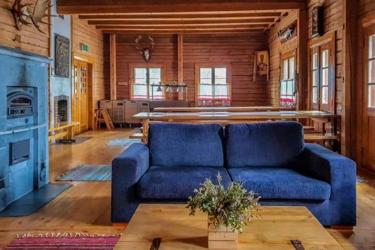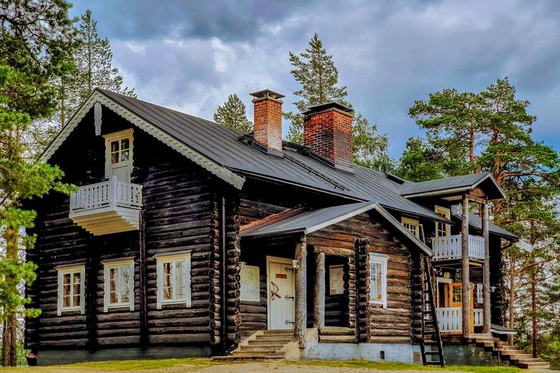 Large, hand-carved log cabin, built in 1964, renovated and modernized in 2015, spacious living room, kitchen, 5 bedrooms, sauna, washroom with hydro massage bath and 2 showers, dressing room and living-, exhibition- and meeting area.