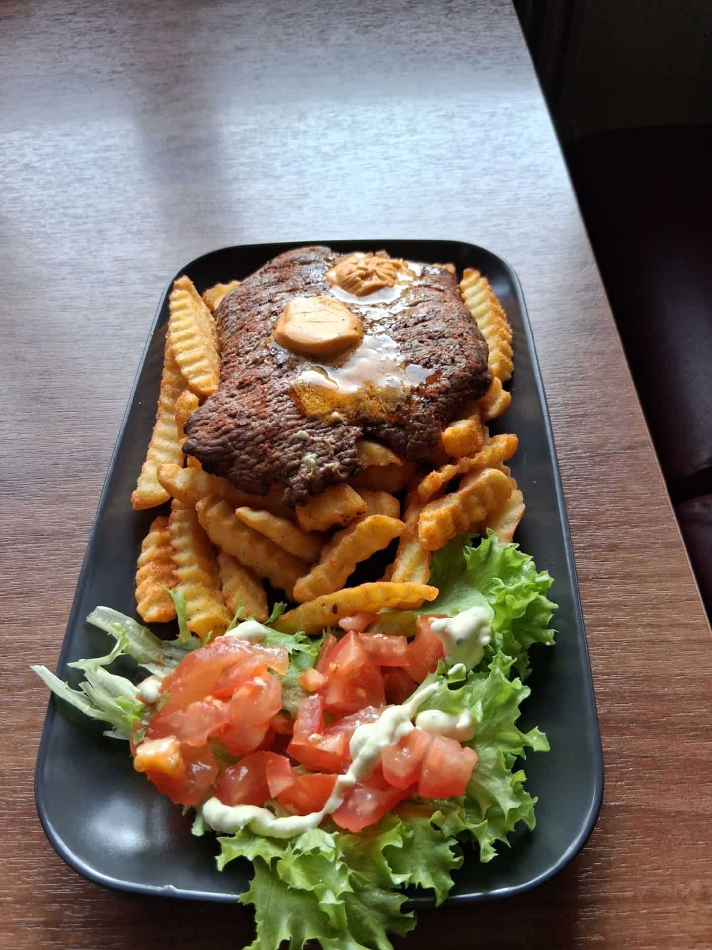 The grill at Piispanpysäkki serves guests every day of the year. The menu has something for every taste: burgers, wings, leaf steaks, and more.