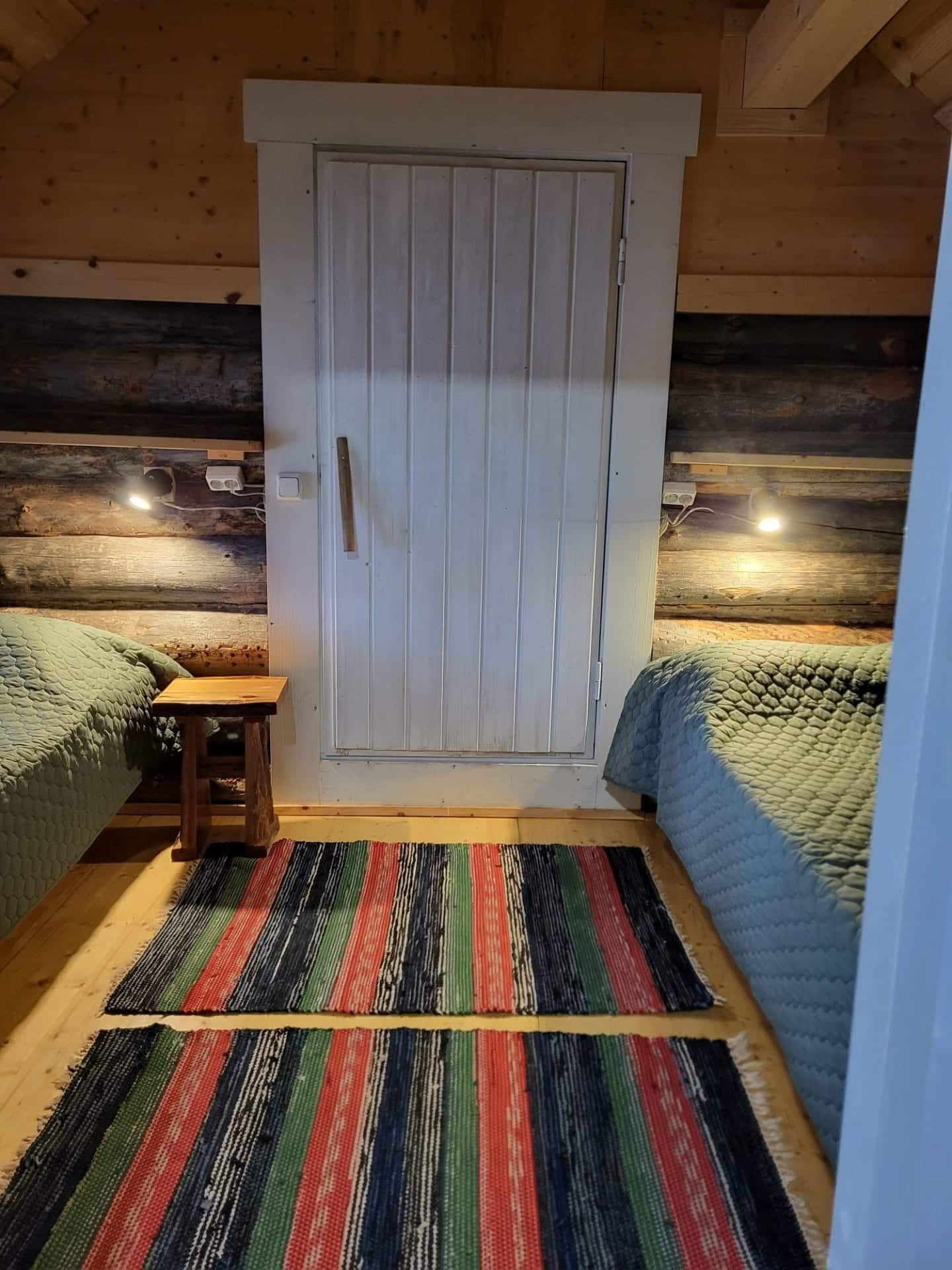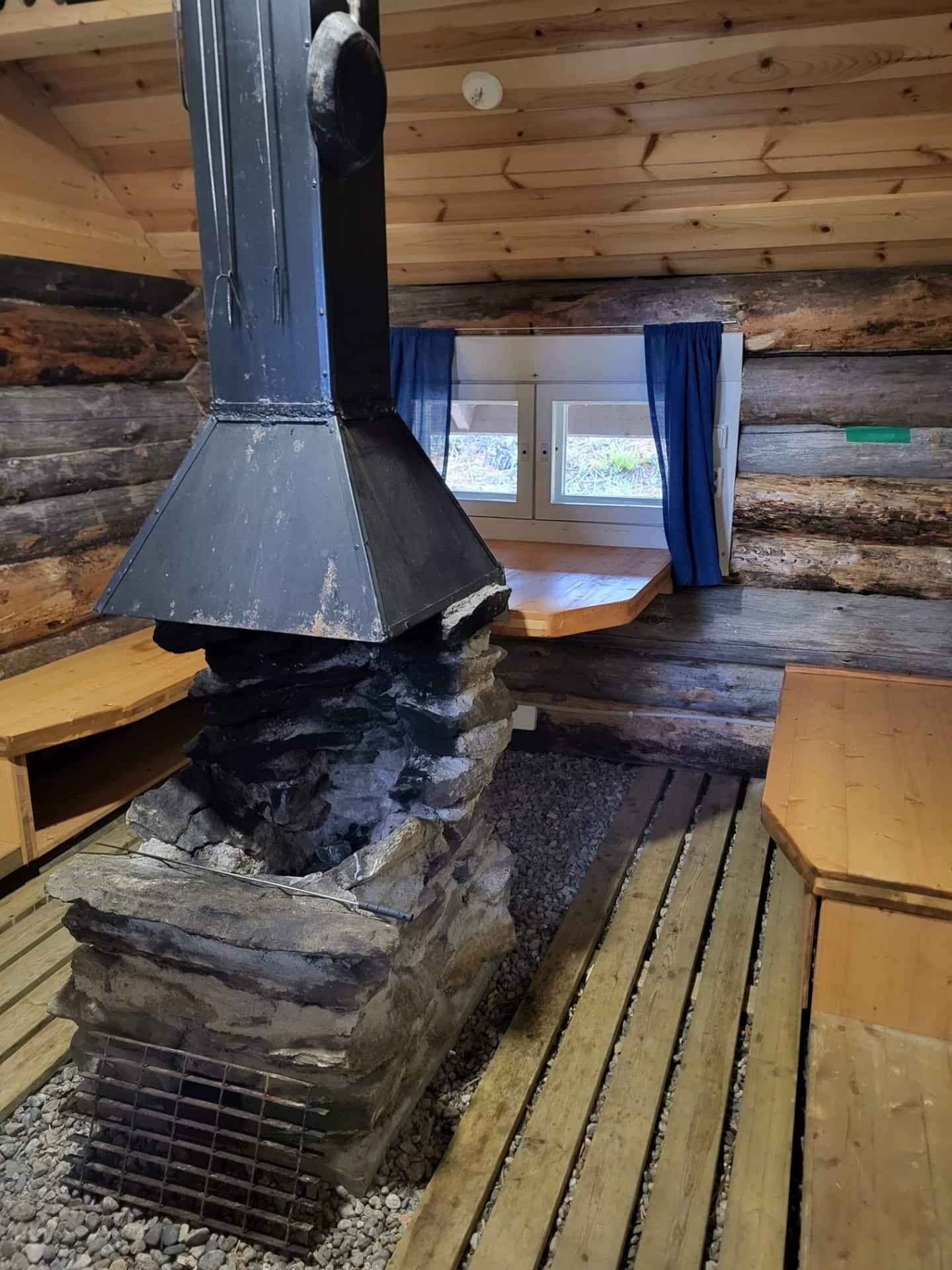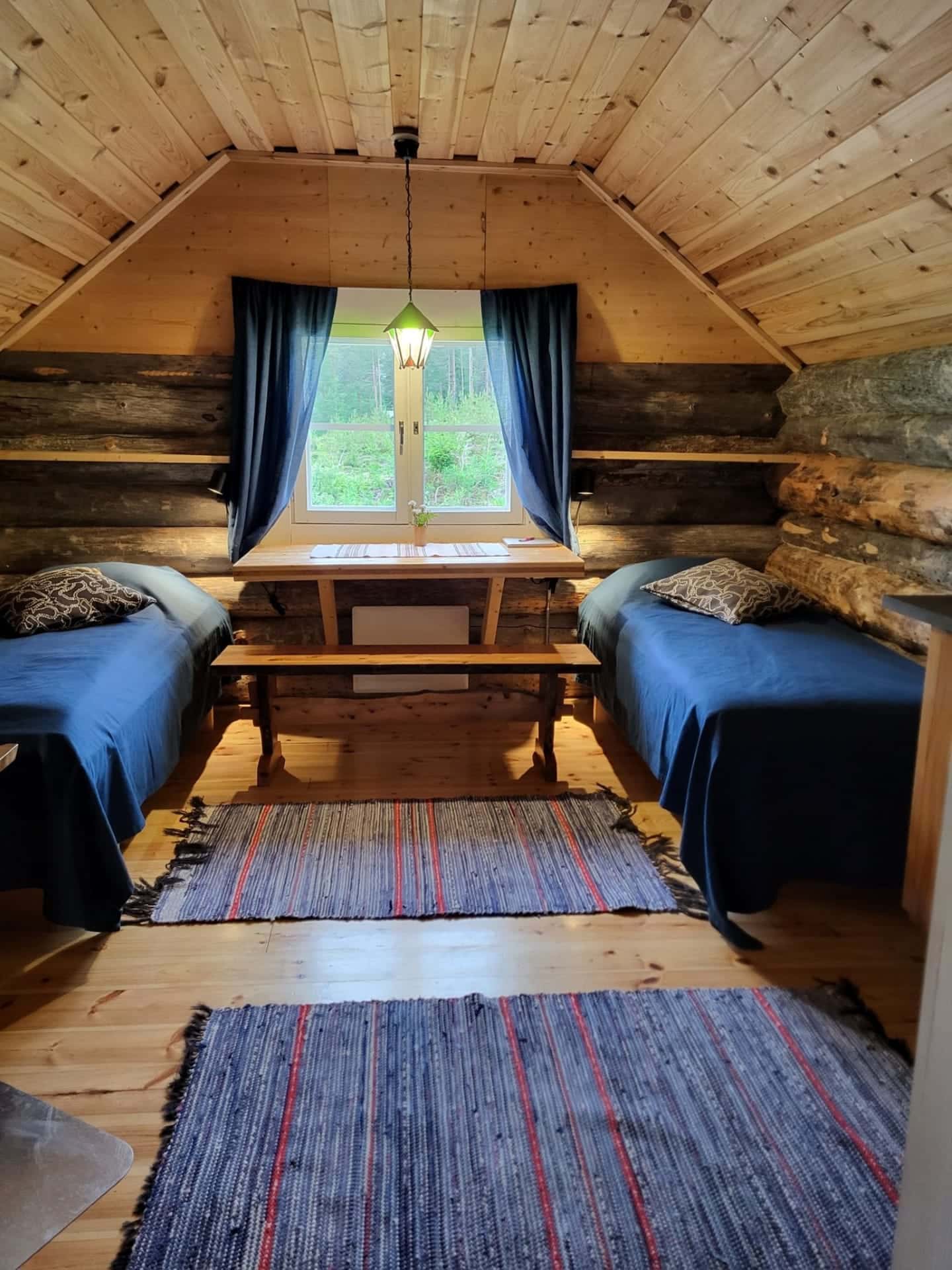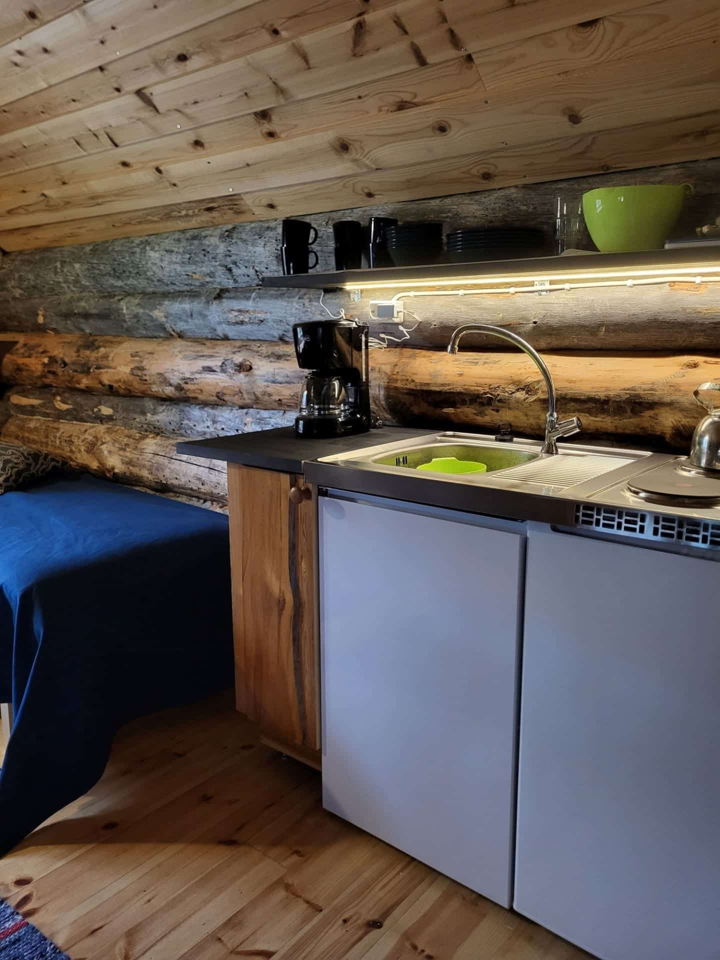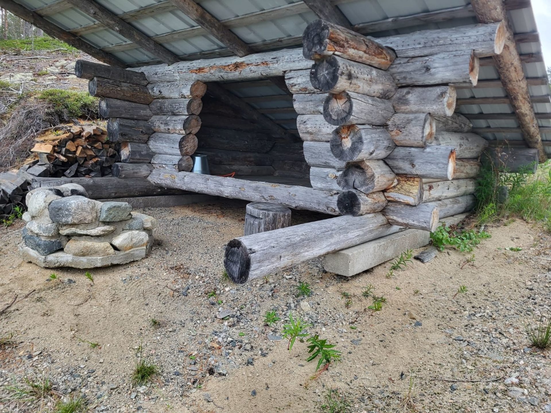 The cabin accommodates 4 people and is equipped with electricity and running water. A lean‑to shelter and a rowing boat are available for use.