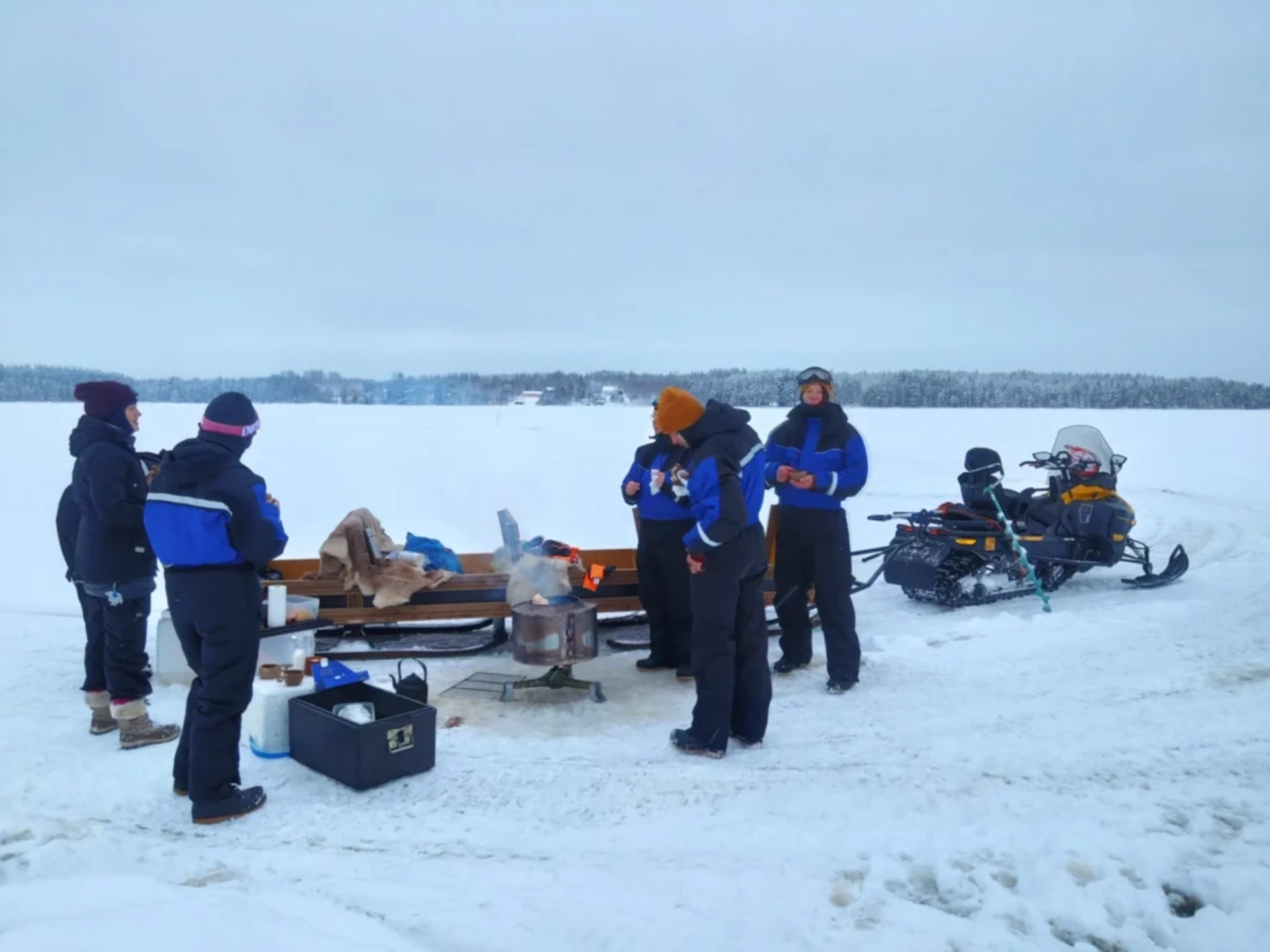 Join us on a snowmobile sledge ride through the enchanting winter forests and lake Nuas. Ride across the snowy landscape, we take time to observe nature.