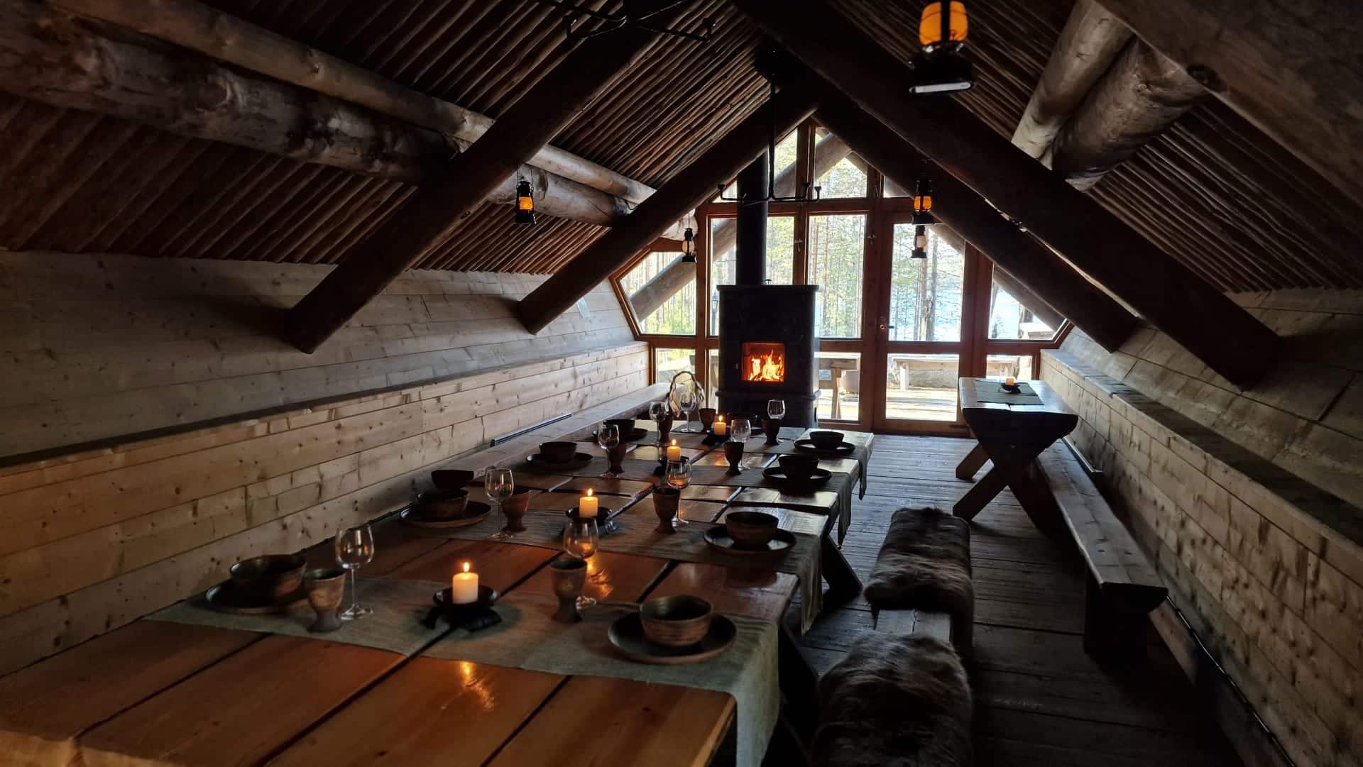 Tilausravintolan toisesta päästä löytyy savusauna, jonka lauteille sopii noin 15 henkilöä kerralla, ja tunnelma on samanaikaisesti hämärä, pehmeä ja rauhoittava. Kiukaan lämpö, tuoksu ja höyry muodostavat kokonaisuuden, joka on monelle vierailun kohokohta.