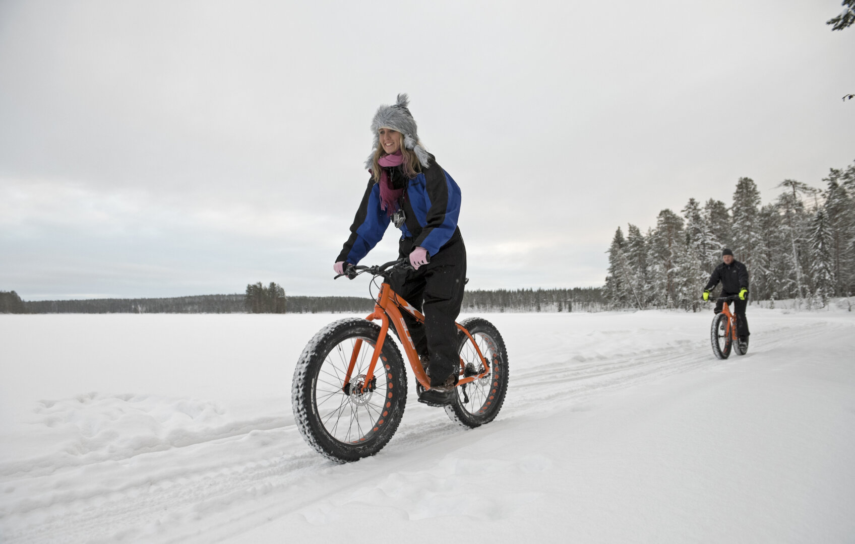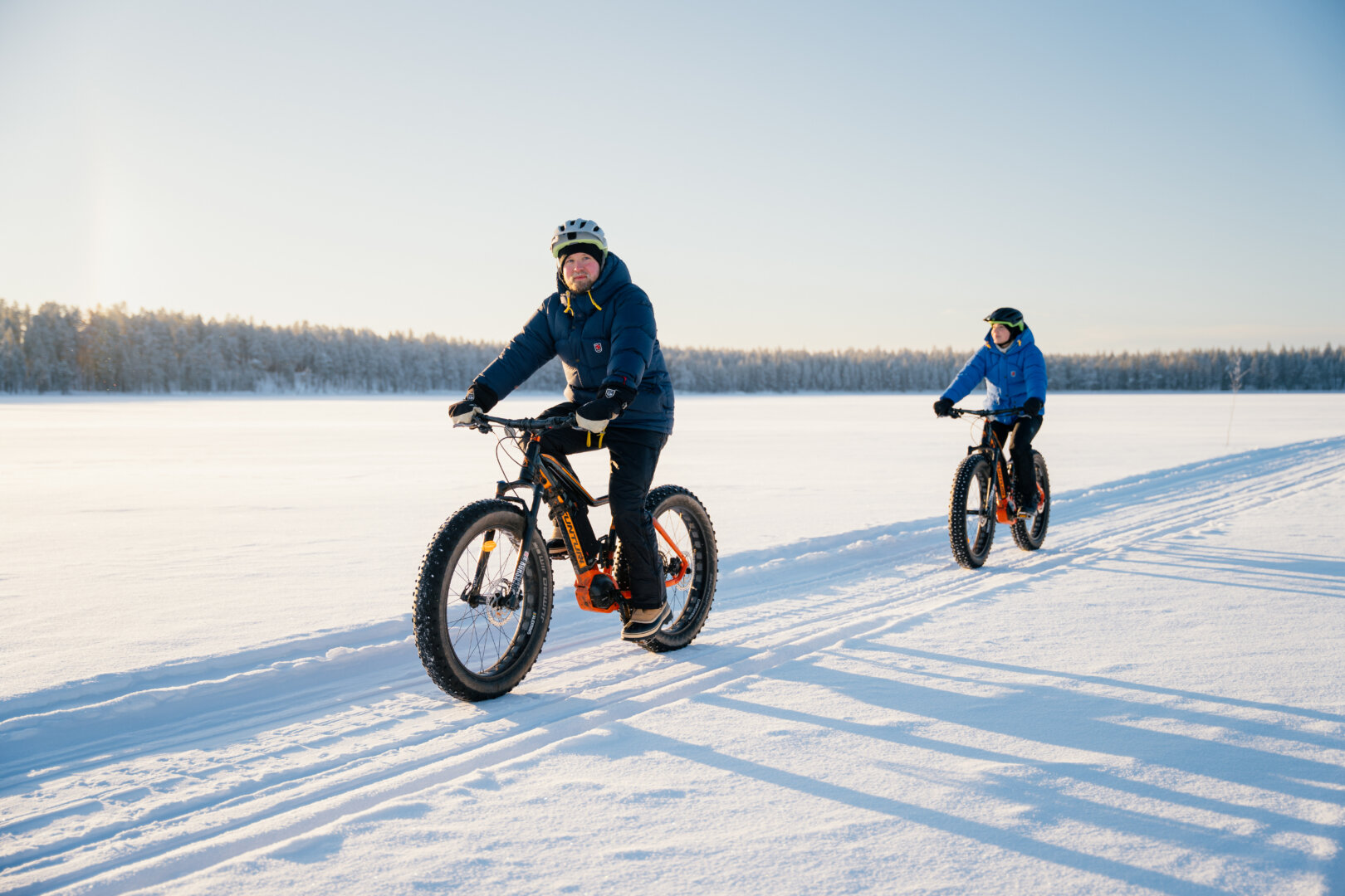 Päivä alkaa runsaalla aamiaisella, jonka jälkeen lähdet pyöräilemään Paltamon talvireiteille. Alueella on useita reittejä, jotka tarjoavat haasteita ja upeita maisemia. Ympäröivät metsät ja järvet ovat kuin postikortista. Pidä taukoja matkalla ja nauti eväitä lumessa. Illalla palatessasi Arctic Giantiin, sinua odottaa rauhoittava sauna ja Ravintola Makuhelmen herkullinen illallinen.